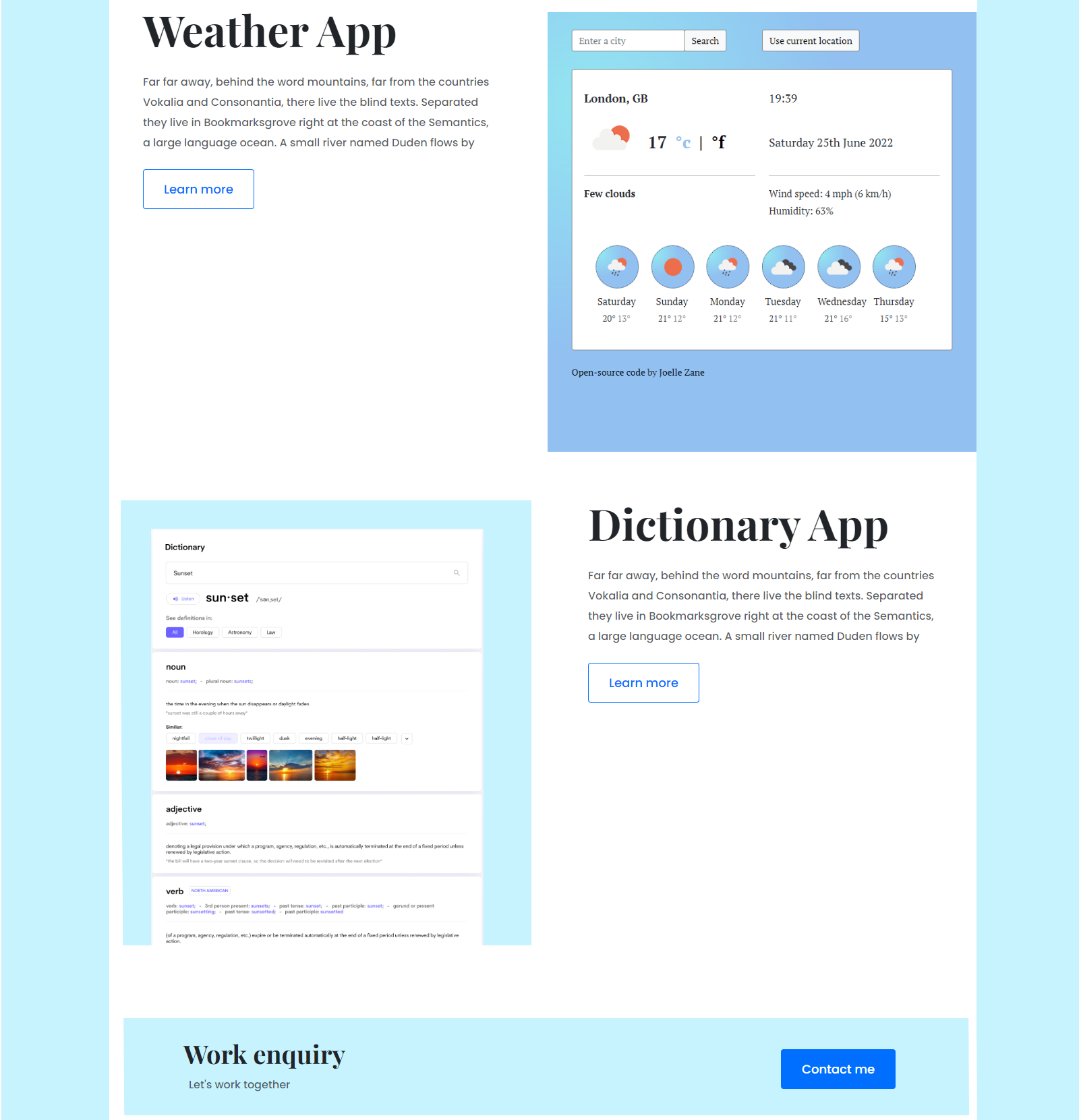 Two apps that show 7 day forecasts for searchable locations around the world.